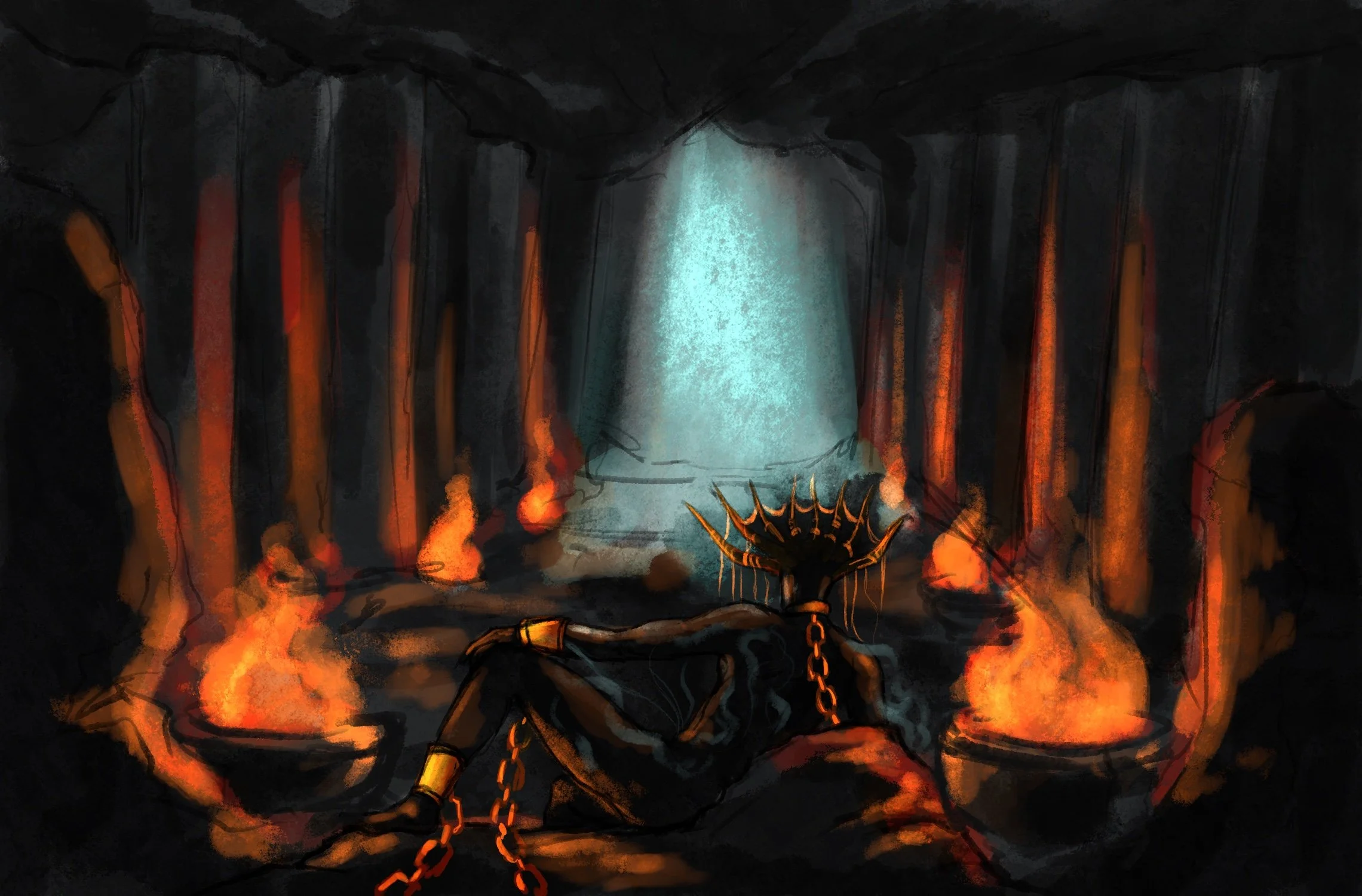 The following media was a storyboard project in which I was challenged to create a story based on an original concept in 16 frames. This was the first draft of my Bedeviled series in which we enter the mind of Ezekiel, the human, to find the imprisoned demon of Chaos. He is called upon to unleash his wrath within Ezekiel’s psyche, ultimately leading to his destruction from within.