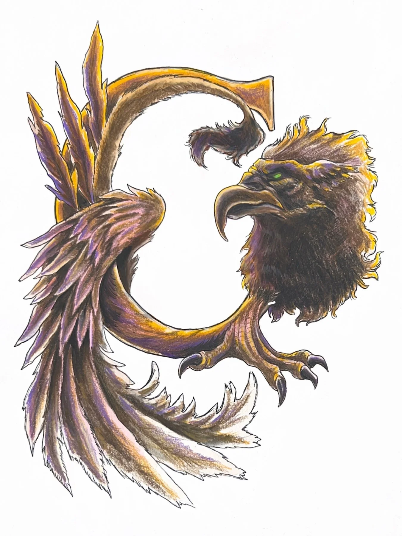 G for Griffin Watercolor and Prismacolor on mixed media paper 2024