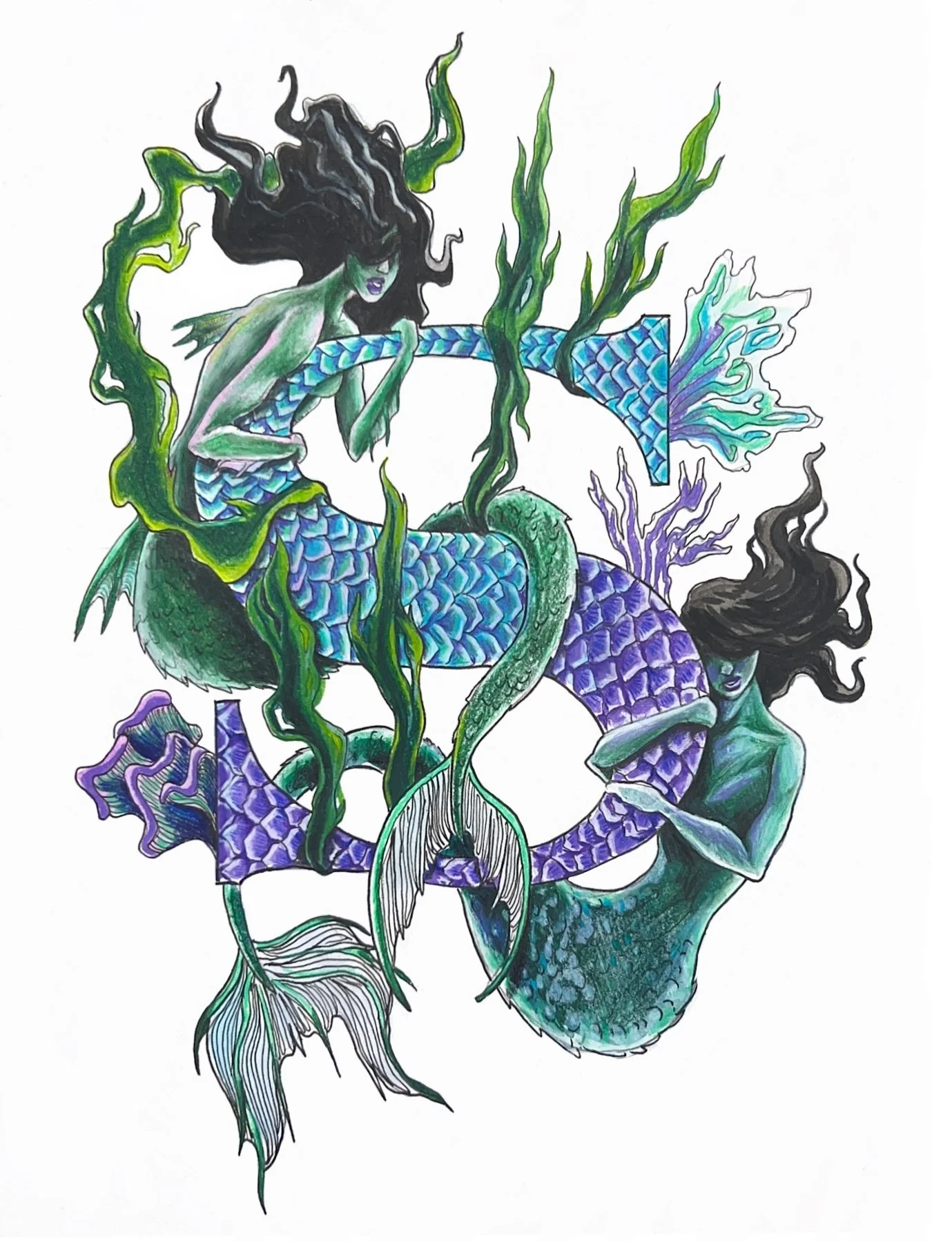 S for Siren Watercolor and Prismacolor on mixed media paper 2024